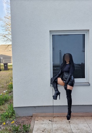 Aber solltest du dich bewähren, erwartet dich ein Feuerwerk gelebten BDSM in reinster, bester Art, ein Erlebnis, das du so schnell nicht wieder vergessen wirst. Ich werde mich einbrennen in den dunklen, lüsternen Teil deiner gierenden Seele, dich befreien und dich halten und dich in ungeahnte Sphären erheben voller Lust und purer Geilheit. Du triffst auf eine offene, neugierige Sad., die sich für dich interessiert, für deine Ideen und auch ausgefallene Variationen begeistert für sich selbst anzunehmen weiß.