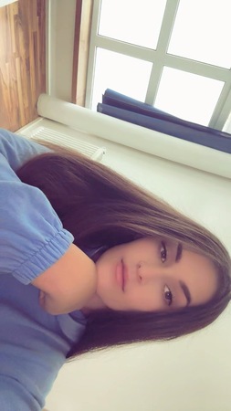 Ich habe ein sehr attraktives Gesicht mit großen Augen und sinnliche, volle L*ppen, umrahmt von langem, dunklem Haar.