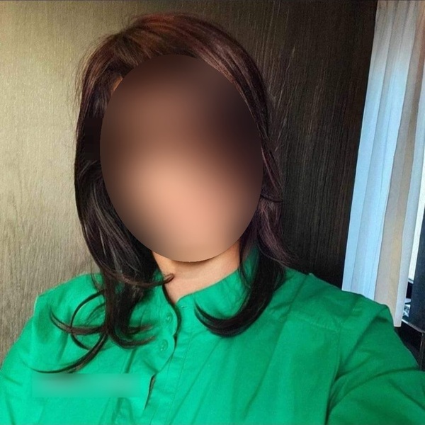 Haare:brünett, schulterlang, glatt