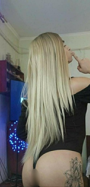 Haare:blond, rückenlang, glatt